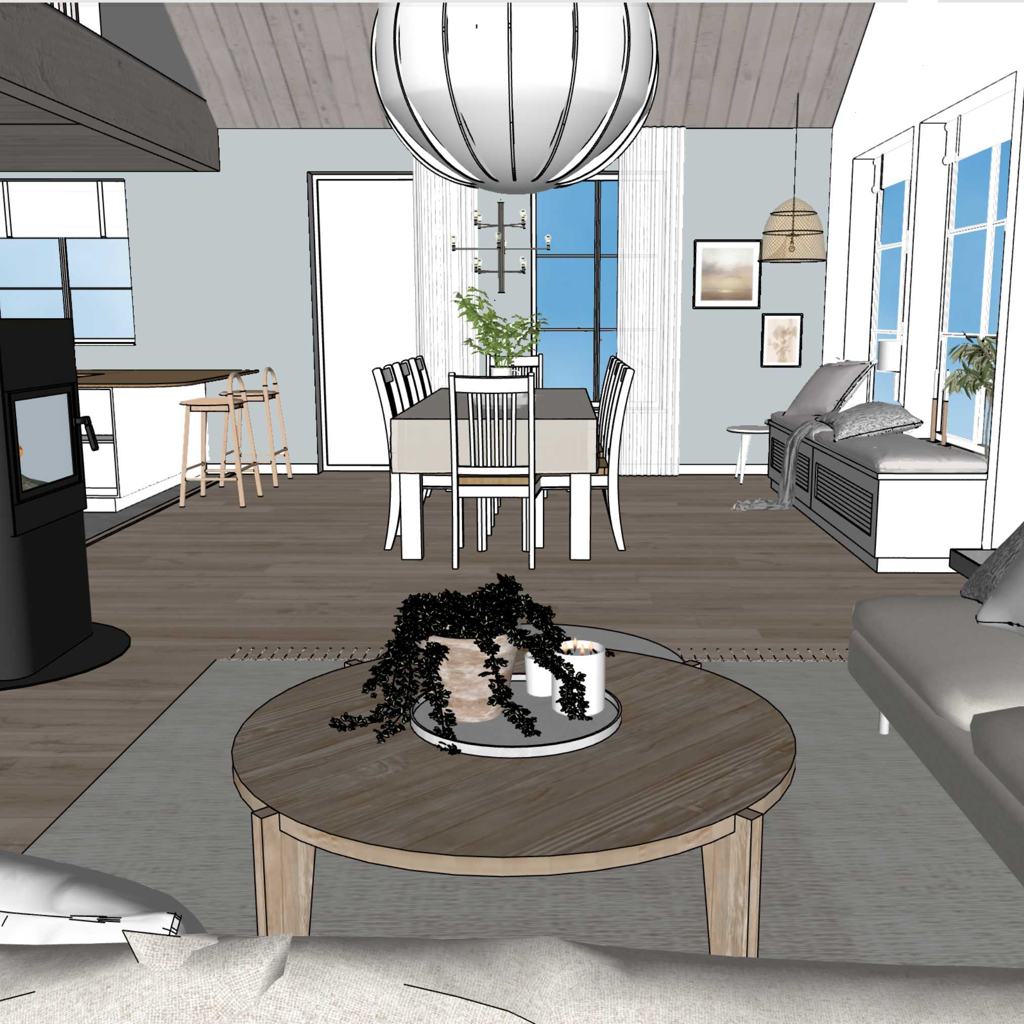 Vi hjälper dig att inreda hemma eller på företaget - inredningsdesign som skapar trivsel och harmoni. Processen är smidig och enkel - det behövs varken möten eller hembesök.