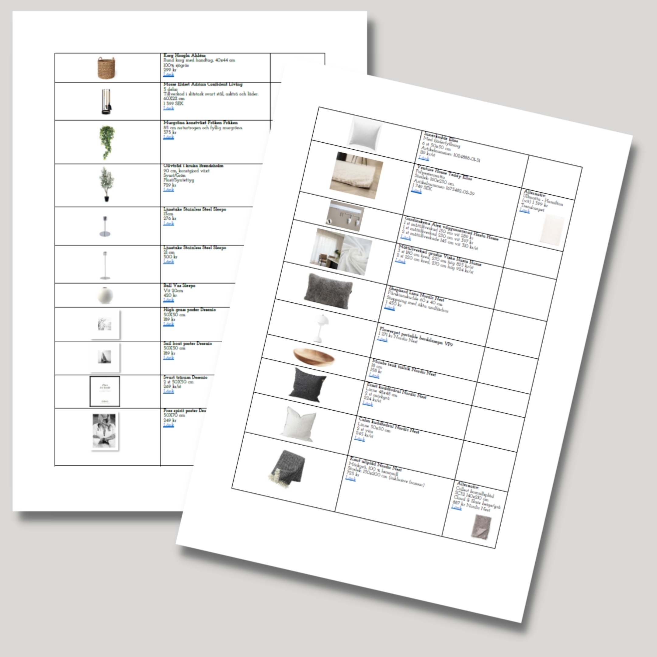 Förslag på möbler och inredningsdetaljer (klickbara länkar).