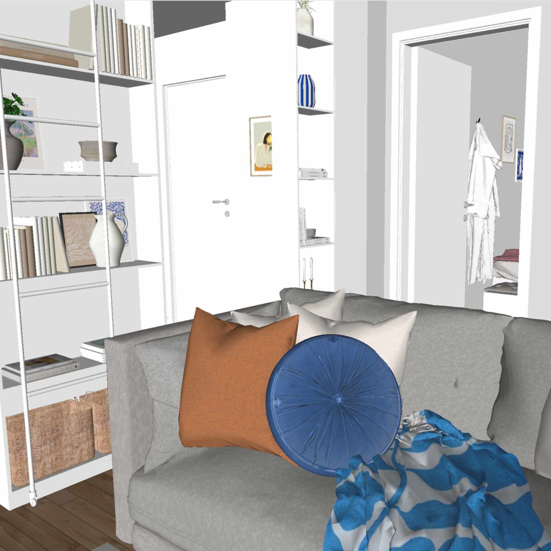 Rummet ritas upp i 3D och ses från olika vinklar.